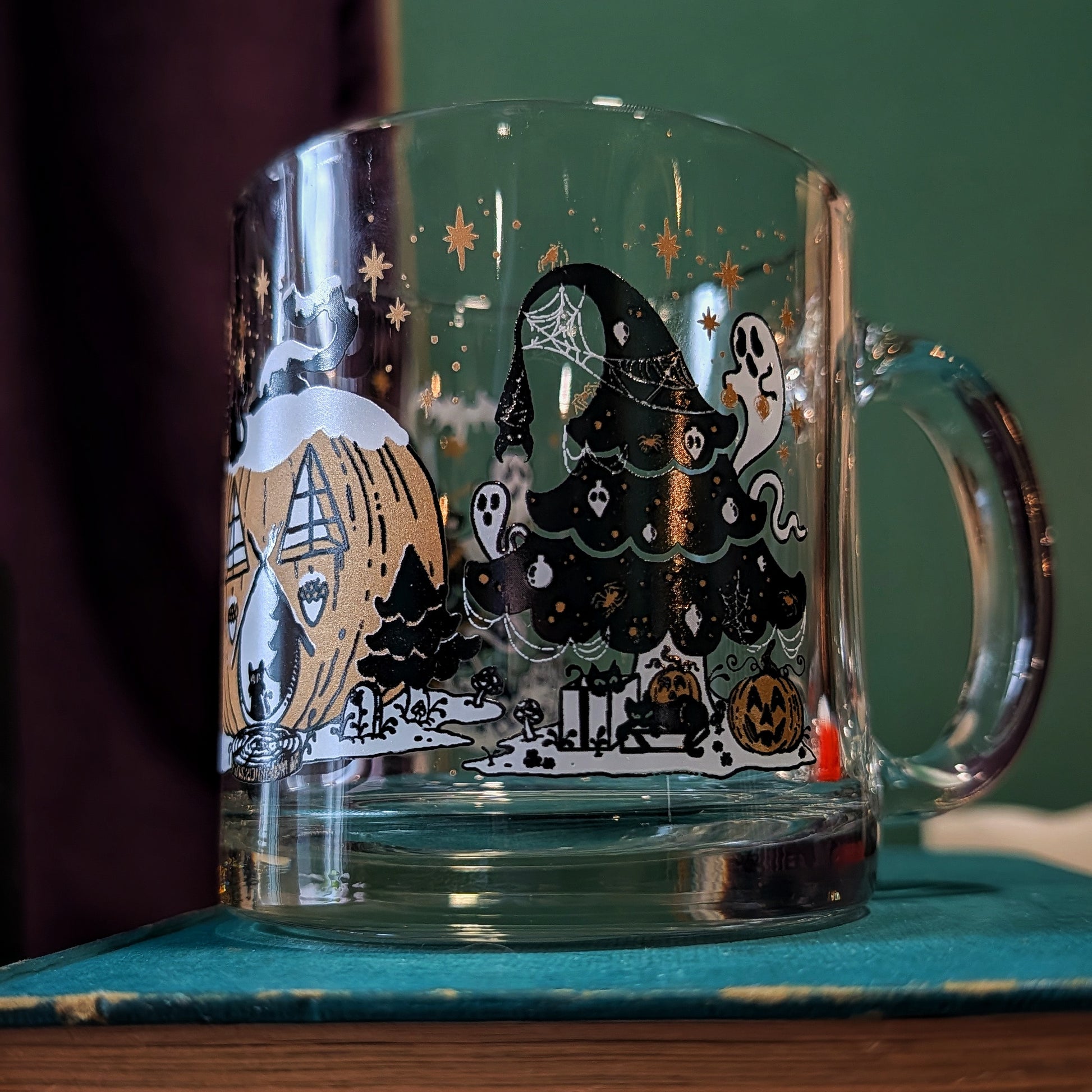 This mug has it all: 13oz capacity, no lead content, eco-friendly inks, a wrap-around image that is dishwasher AND microwave safe, all in a lightweight glass package! Modernize your vintage mug collection without compromising on your spooky style! Made in Syracuse, NY.